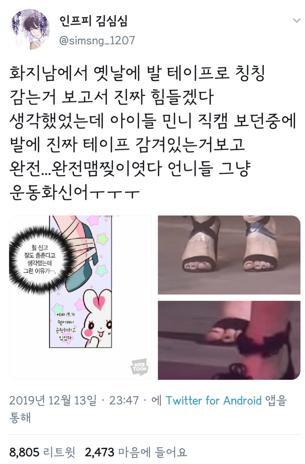오 저렇게하면 좀 편하게 힐을 신을수 있나봐!! 여돌 꿀팁이네 라고 생각했었음 ㅠ -