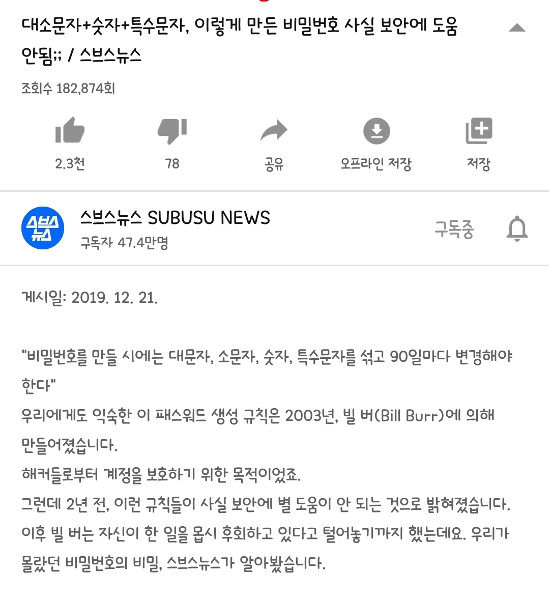 동영상대소문자+숫자+특수문자, 이렇게 만든 비밀번호 사실 보안에 도움 안됨;; / 스브스뉴스www.youtube.com