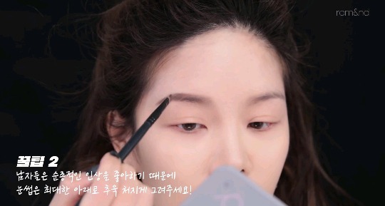 꿀팁2~^^~~~남자들은 축 처진 눈썹 좋아하니까 눈썹산 무시하고 무조건 아래로 아래로 처지게 그려주세여~~~^^