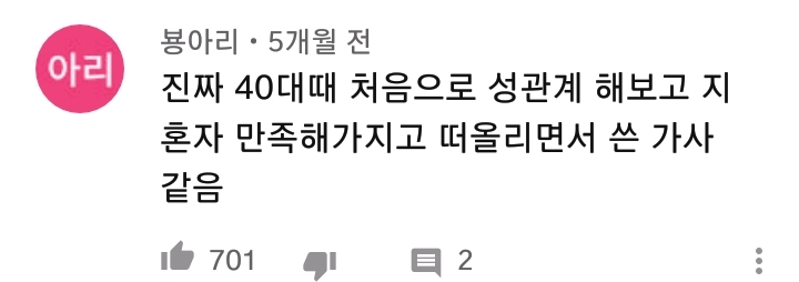 [배꼽의행방]시아준수 '비단길' 노래 유투브 댓글 작성자은비는별나라요정|작성시간19.12.25|조회수17,729 목록 댓글 44 글자크기 작게가 글자크기 크게가 출처 :https://youtu.be/hVLuZYutZPc 다음검색 현재 게시글 추가 기능 열기 북마크 공유하기 신고 센터로 신고 댓글 댓글 44 댓글쓰기 답글쓰기 댓글 리스트 작성자박강두 | 작성시간 19.12.25 ㅋㅋㅋㅋㅋ ㅅㅂㅋㅋㅋㅋ 노래 근데 진짜 개좆같음 작성자정형돈 | 작성시간 19.12.25 몸캠 ;;존나 ㅋㅋㅋㅋ 작성자농심신난년 | 작성시간 19.12.25 가사만 봐도 듣고싶지않다 절대 안들을껴 작성자너나 좆돼라 | 작성시간 19.12.25 차에서 겨우 내렸더니 청나라 비트 ㅋㅋㅋㅋ 작성자소나기 별 | 작성시간 19.12.27 ㅋㅋㅋㅋㅋㅋㅋㅋㅋㅋ미친 댓글 진짜 너무 웃겨 ㅋㅋㅋㅋ 댓글 전체보기