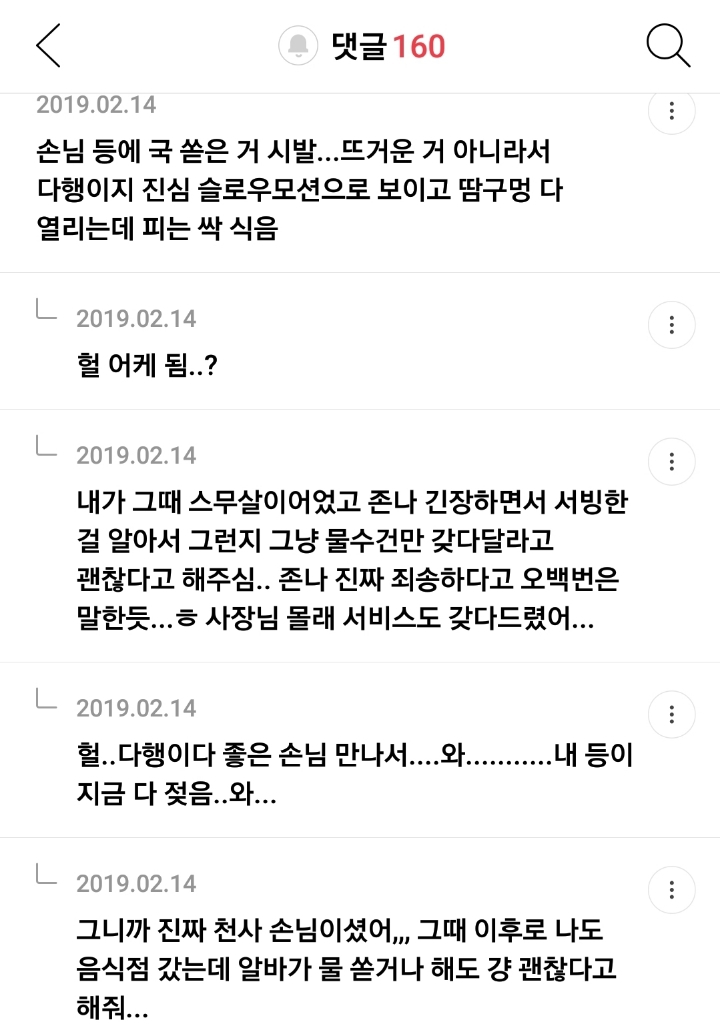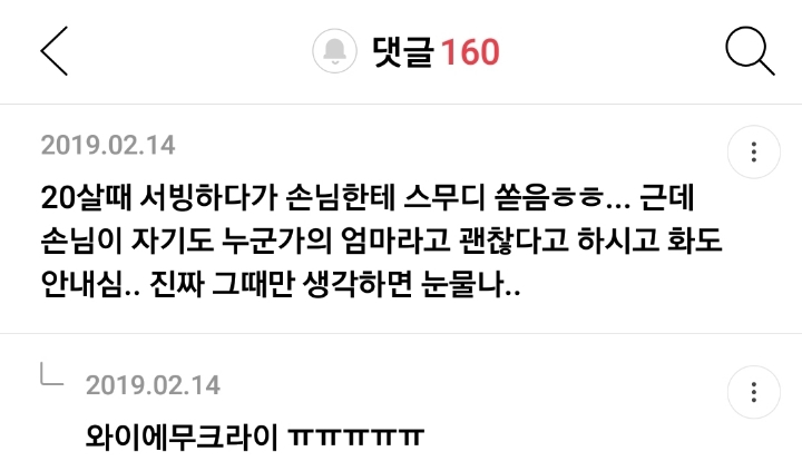 작성자부륵부륵 방구장이 작성시간 19.12.26 레스토랑 알바하는데 한국손님 중국인한테 대접한다고 음식 다 결제하고 나갔음