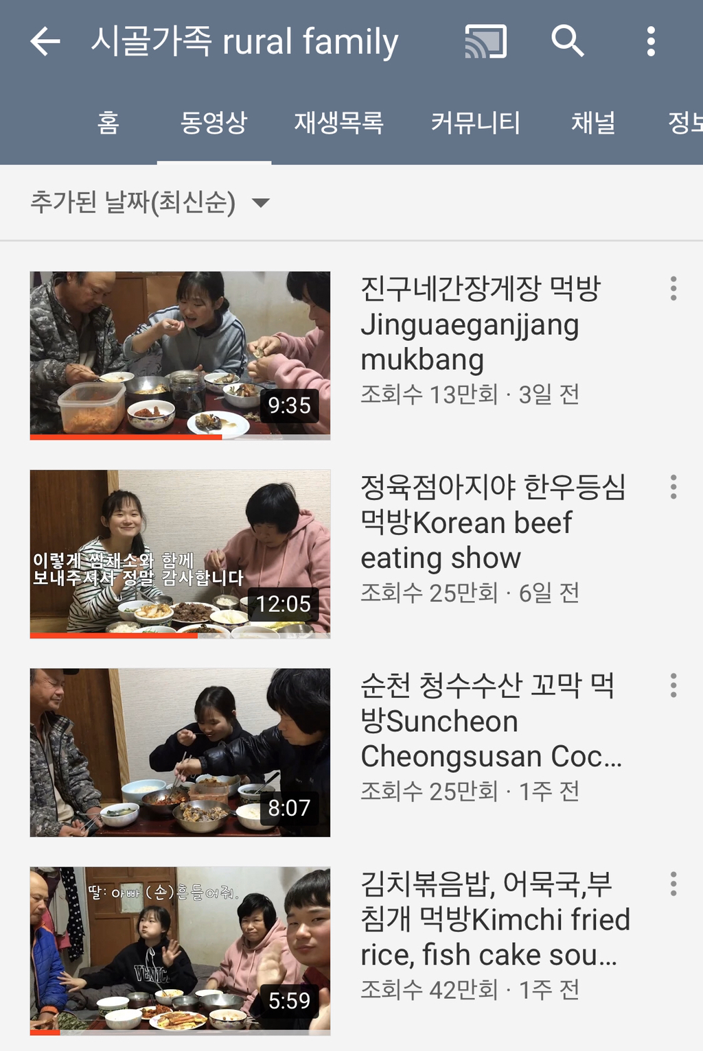 유튜버 시골가족의 영상임!