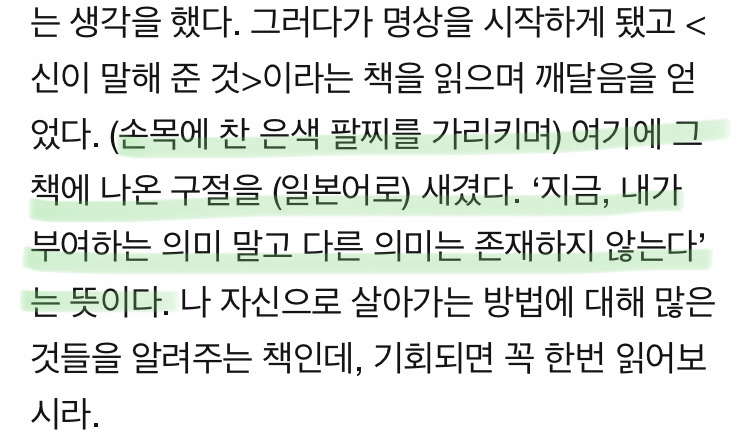 "지금, 내가 부여하는 의미 말고 다른 의미는 존재하지 않는다"는 문장을