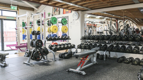 근력운동이 가능항 덤벨과 바벨이 있는 프리웨이트 존