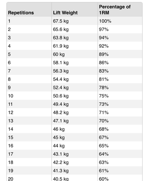 그럼 여러분은 1회에 67.5kg는 들 수 있게 되는 거야