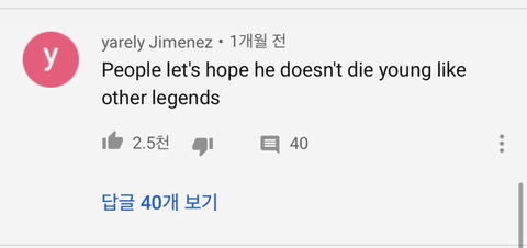 베스트댓글 : 사람들은 그가 다른 레전드들처럼 어린나이에 죽질 않길 바래