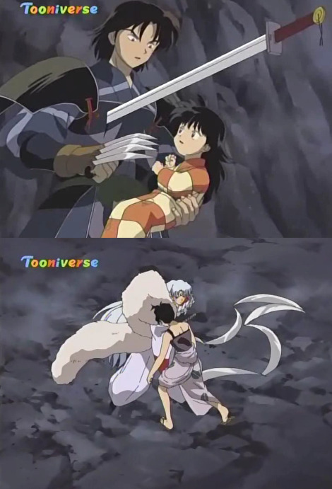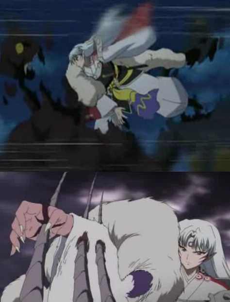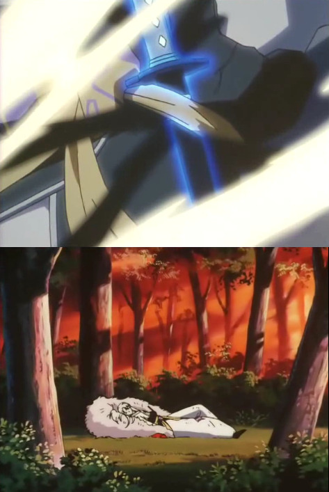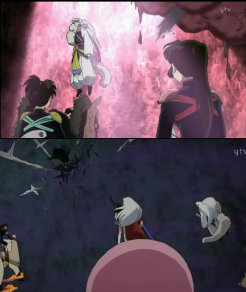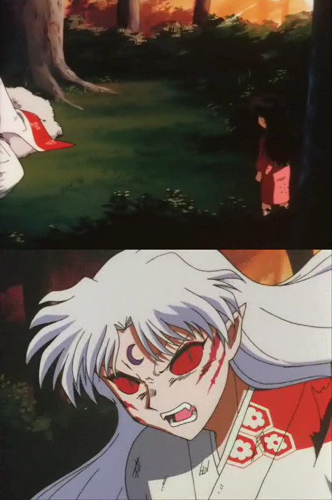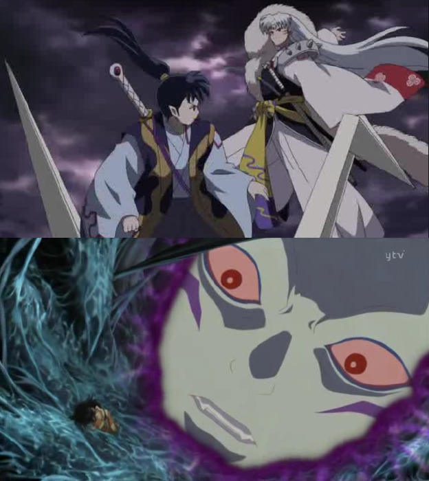 죽어 적에게 흡수된 셋쇼마루를 보고 멘붕한 이누야샤가