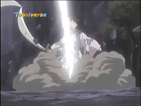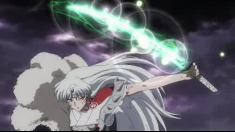 이누야샤는 명도잔월파를 어찌 써야할 지 우왕좌왕하다가