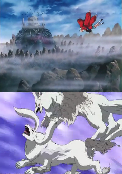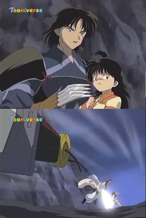 궁지에 몰린 이누야샤가 쥬글힘을 다해 명도에서 나갈 방법을 강구하고 있을 때