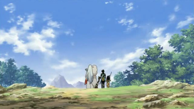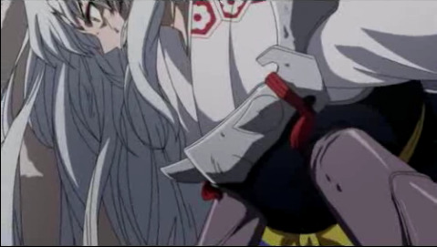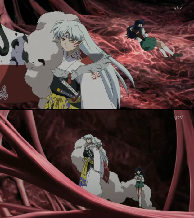 링이 위험에 빠지자 싸우던 적을 뒤로하고 등까지 보이는 셋쇼마루