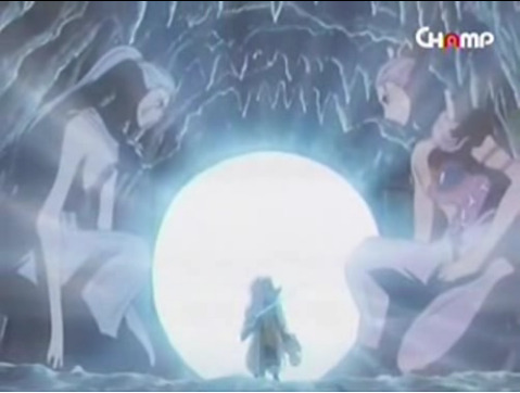 여자는 요괴들의 힘을 빌려 이누야샤에게서 철쇄아를 빼앗아 오지만