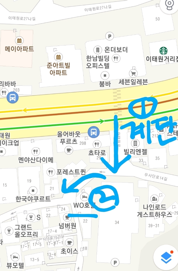 이태원 거리 빌리엔젤 옆에 엄청 높은 계단 있는데 거길 올라갔음..