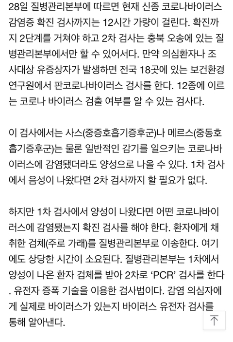2차 검사는 오송에 있는 질병관리본부에서만 가능하기 때문이긔
