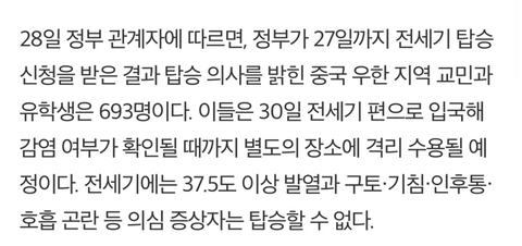 정부는 우한 지역 교민들을 위해 전세기를 보내지만
