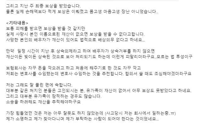 고인의 보험이 있으면 그것으로 아주일부 보상받을 수 있음