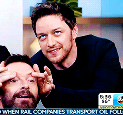 제임스 맥어보이가 휴잭맨의 눈썹을 농락하고있다.