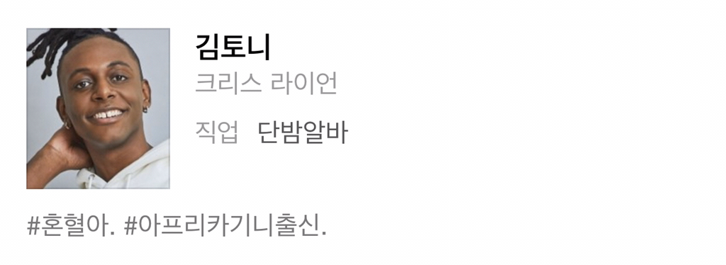 여기서 토니라는 인물은 개비가 한국인인 캐릭터임