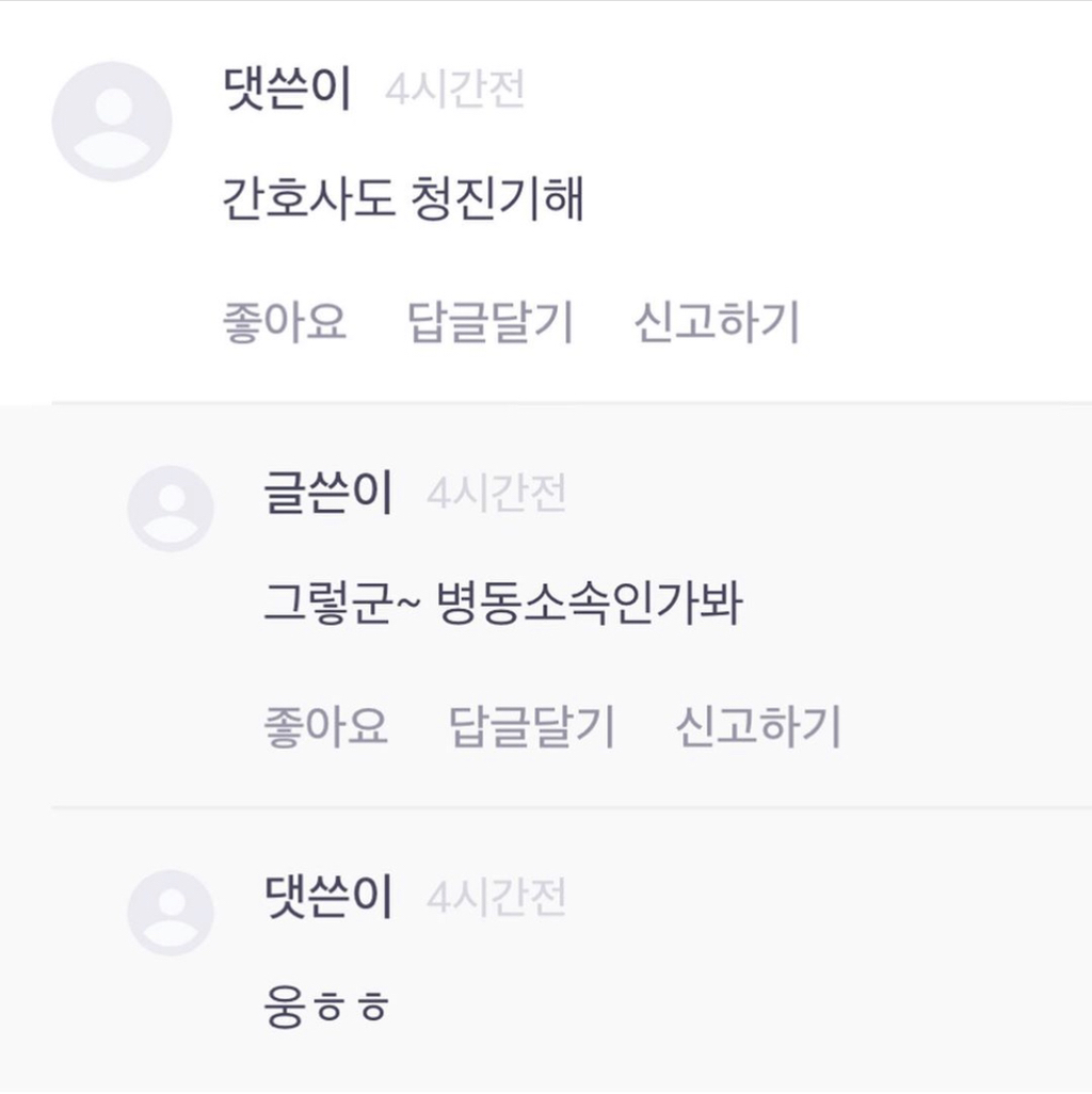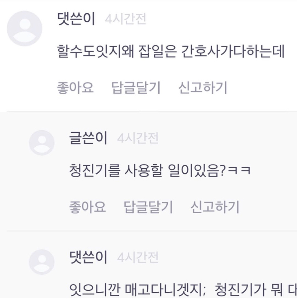 간호사가 무슨 일을 하는지도 제대로 모르면서 억측부터 하는게 너무ㅋㅋㅋㅋㅋ
