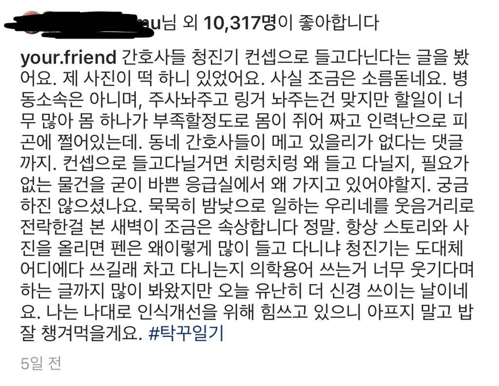 유명한 간호사쌤 인스타그램에 올라온 글..