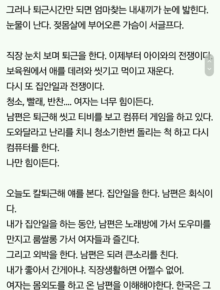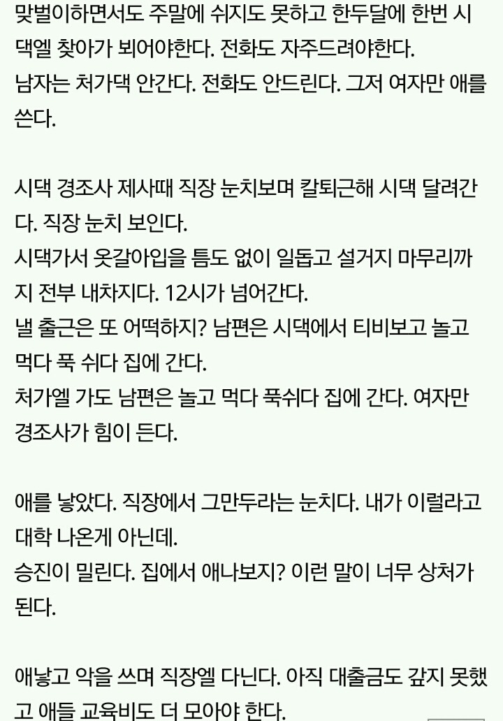 속은 고생이란 마음고생 다 하고 아내는 참고 사는 경우 오조오억번 봄..