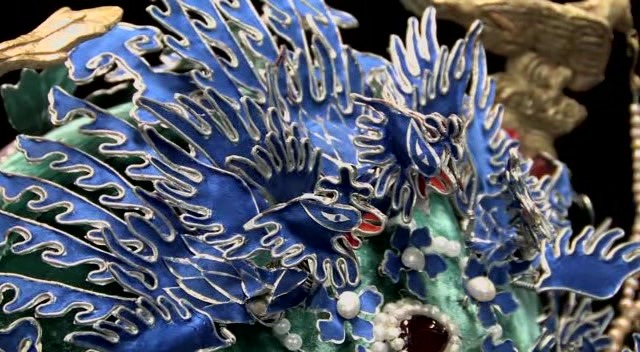 비취색 진주, 일곱마리의 꿩 장식으로 된 적관.