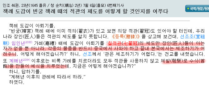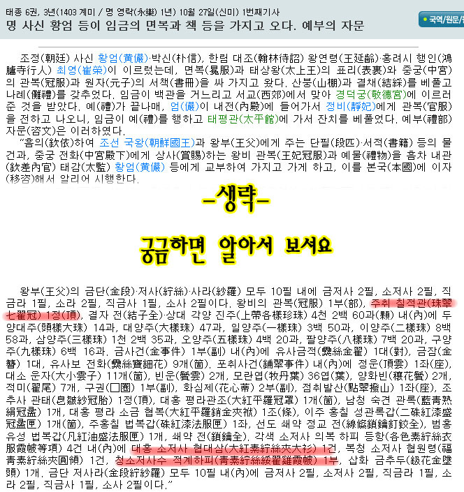 이때까지 명나라에서 왕비의 대례복을 사여받아서 쓰고 있었는데