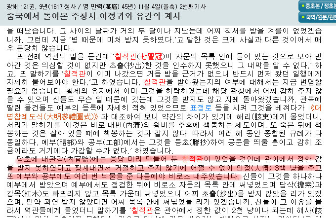 이 칠적관에 관해서 웃지못할(?) 에피소드가 하나 있는데,