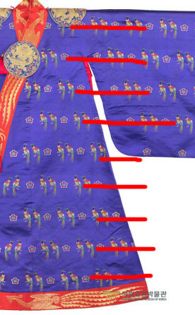 사진에서 왼쪽은 대비의 적의인데 왕비의 것과 같으나
