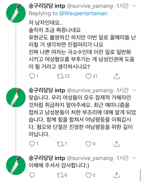 답댓글 작성자온수매트짱좋아 작성시간 20.03.18 진짜 xy들은 미개해