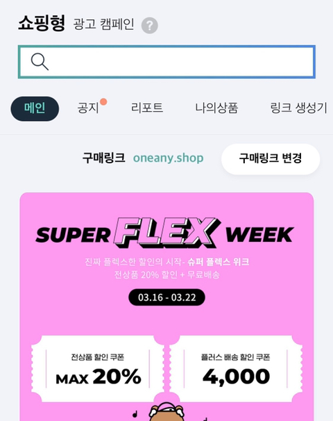 (5-1) 개인적으로 소개하고 싶은 제품의 구매 링크를 복사해 붙여넣어서 수익성 링크(oneany.shop)를 얻는 방식이 있어!
