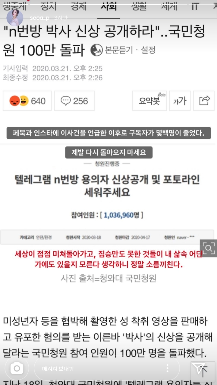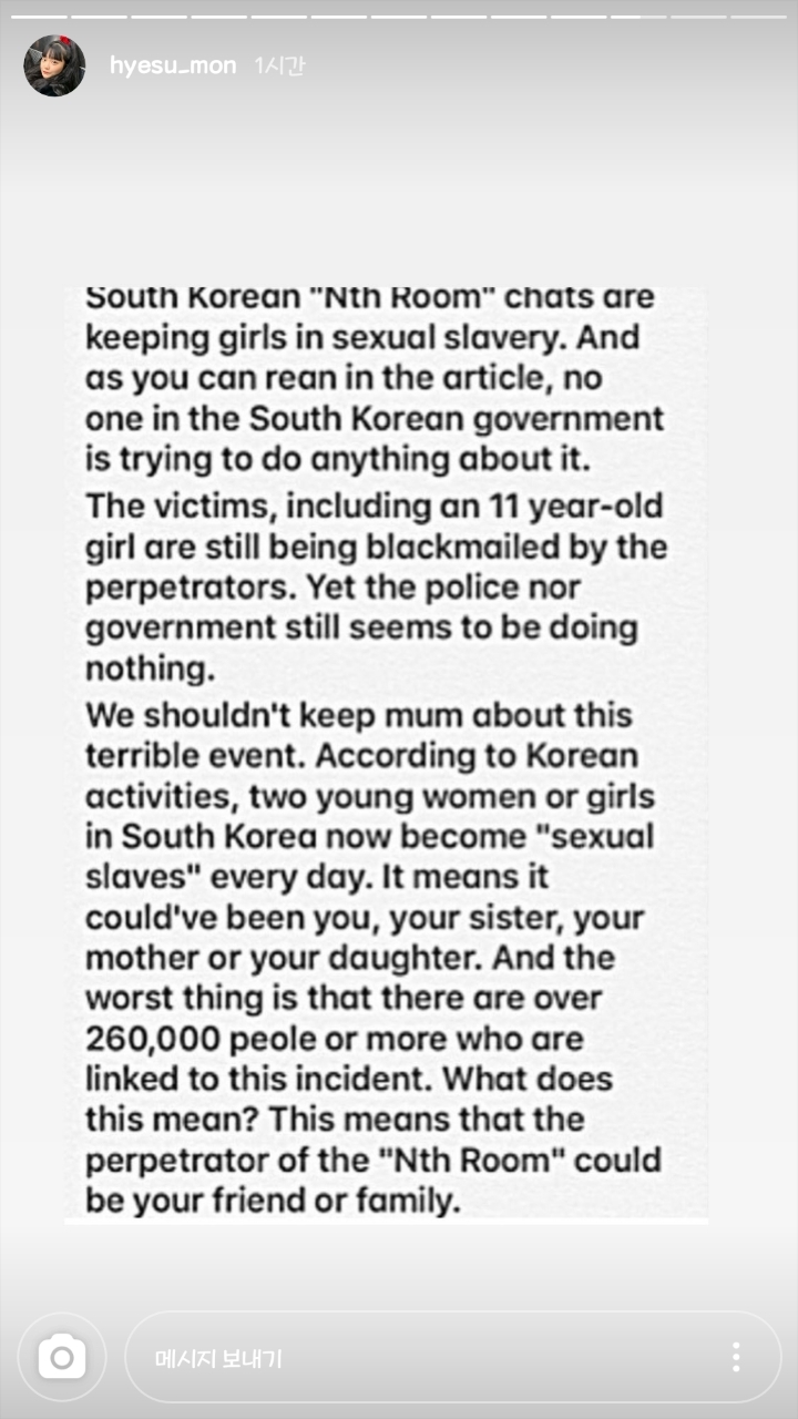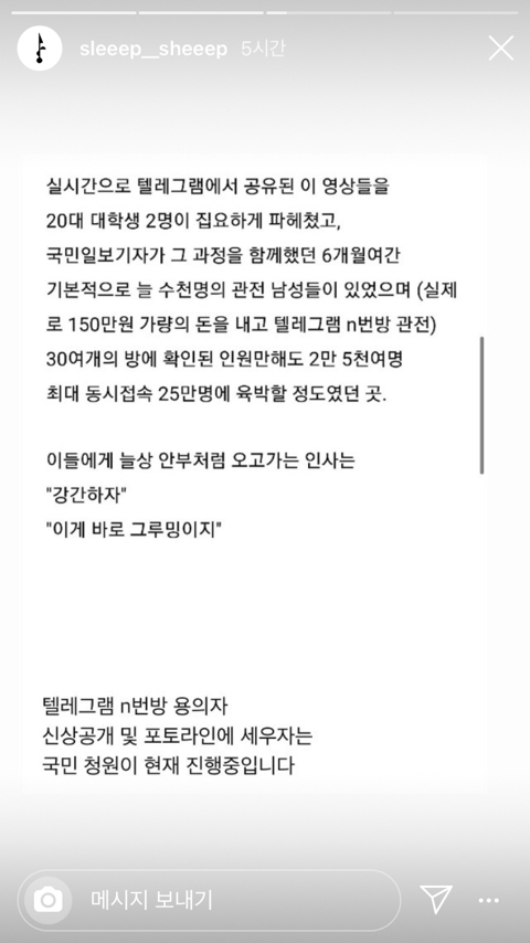 이건 인스타스토리는 아니지만 n번방 관련 게시판 만들어준 핑크다이어리!