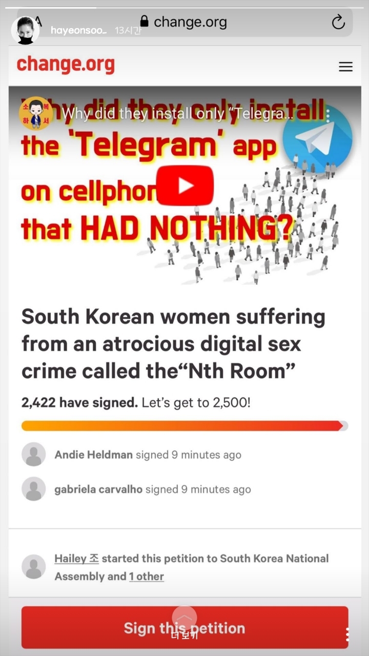 동양인 비하했던 흑인 인스타에도 댓글 남겨주셨는데 n번방도 소리내주셨구나!!