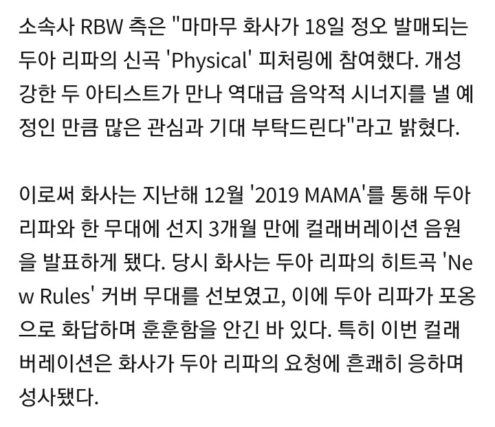두아리파측에서 화사한테 직접 피쳐링 요청