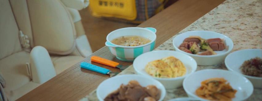 우주 씻는 동안 아침밥 준비
