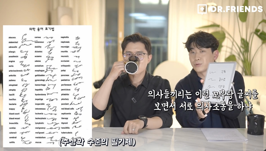 못알아볼 정도로 휘갈겨 쓰는 의사는 있어도 그게 정해진 필기체는 아니라고 함 그냥 악필인거