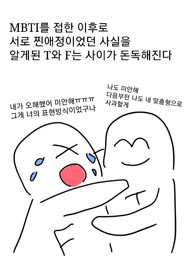 만화적 과장으로 대충 T와 F는 이런 느낌이다~라는 표현이에요