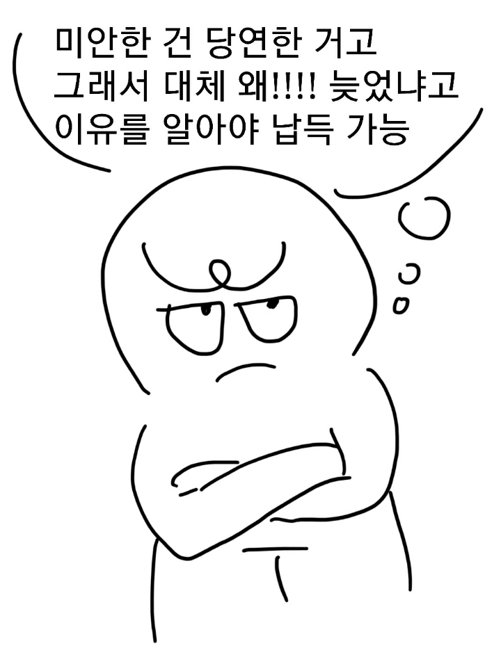 사과만 하면 그래서 오ㅐ 늦었는데 이유캐묻게되고