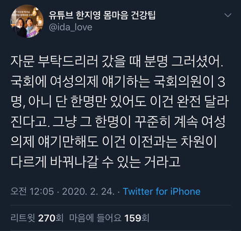 여성의 목소리가 기성정당을 변화시키길 바라서임