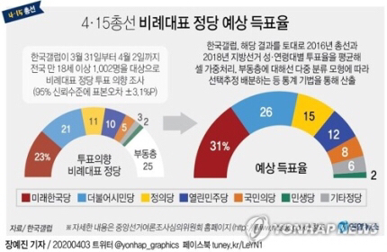 열린민주당+더불어시민당 비례표 합치면 여전히 지지도 1위이고 "진보분열"은 총선 후 두 당이 얼마나 더민주 쪽으로 붙고 힘을 합쳐주느냐의 문제임
