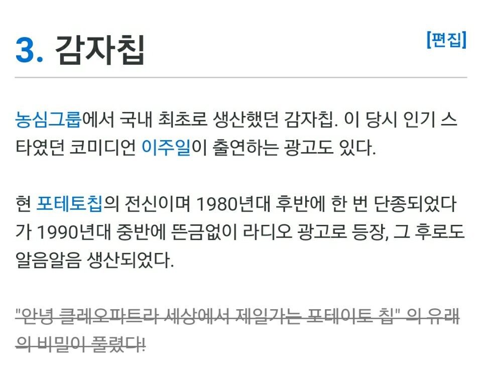 ㅡ크레오파트라(농심): 농심그룹 칩포테토의 전신이며 맛도 동일하다.ㅡ