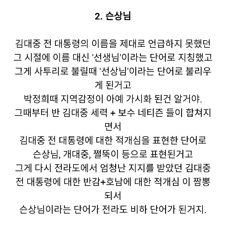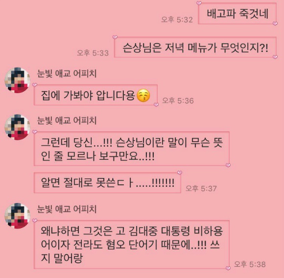 웅앵웅 일베한테 용어 뺏어올거야 어쩌구 옹알옹알~~~ 응 슨상님 많이 써^^ 사투리인 선상님도 아니고 일베에서 만든 슨상님으로 꼭 전라비하, 전라혐오, 전라차별 없애줘~~!!! 부탁해~~~~~~^^!!!!