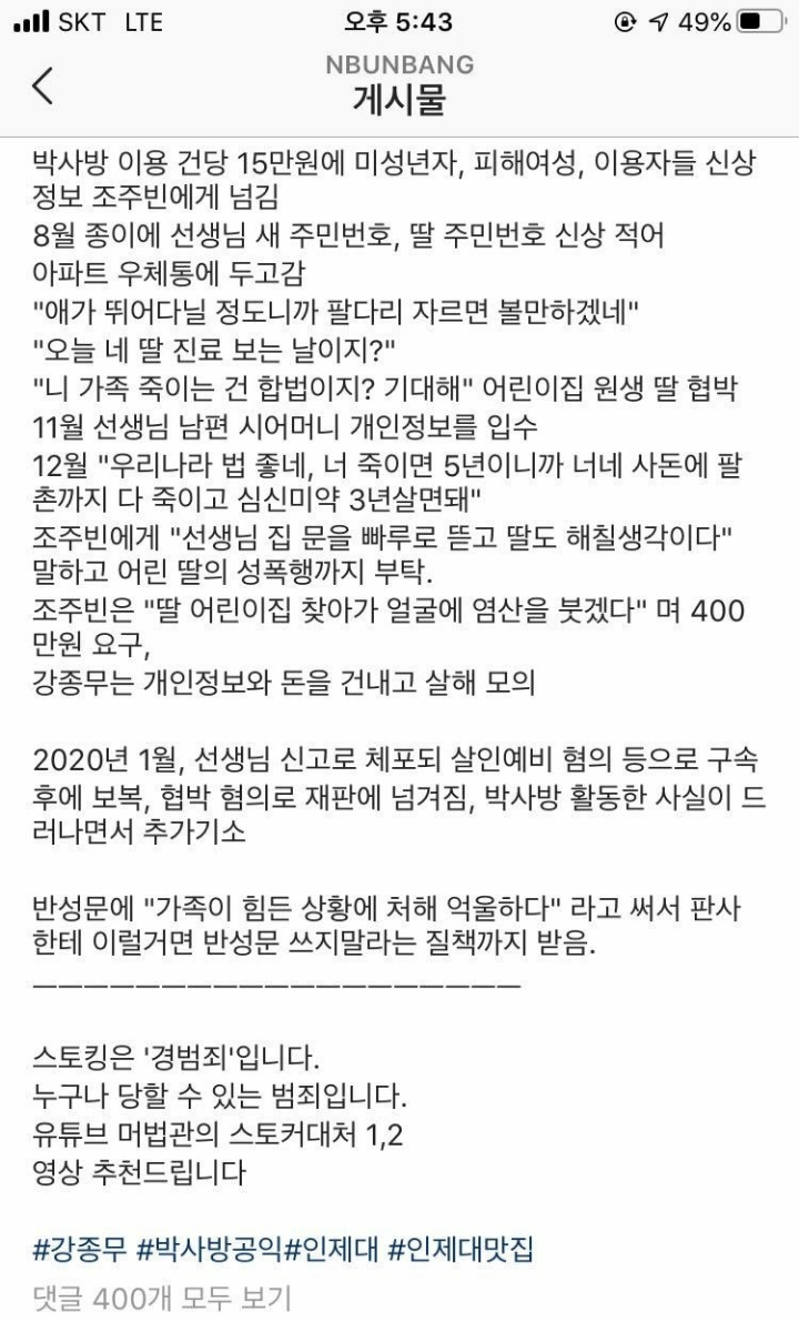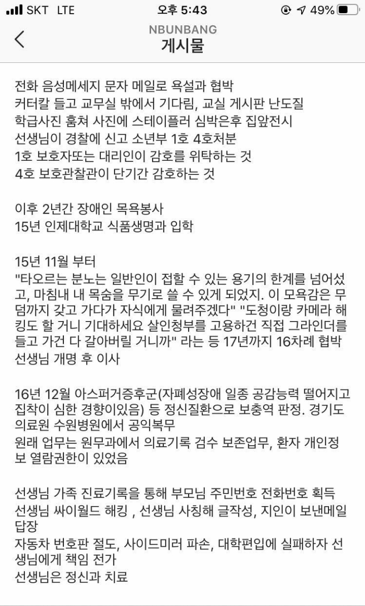[씹빨쌔끼뜰]박사방 공범 공익이 담임교사한테 무려 7년간 한짓 작성자모든흉터는내안에서신이될수있다|작성시간20.04.18|조회수14,134 목록 댓글 138 글자크기 작게가 글자크기 크게가 출처 : https://theqoo.net/1375204295원글엔 범인 얼굴도 있으나 혹시 몰라서 자르고 올림 실명이랑 소속학교는 팩트라서 안지움가해자 구속 직전까지 계산하면 햇수로는 9년째임 다음검색 현재 게시글 추가 기능 열기 북마크 공유하기 신고 센터로 신고 댓글 댓글 138 댓글쓰기 답글쓰기 댓글 리스트 작성자문수인 | 작성시간 20.04.19 사형해야함 작성자행복할시 | 작성시간 20.04.19 ㅅㅂ 저딴새끼는왜자꾸 신원조회가되게하는데 작성자해피하게살자 | 작성시간 20.04.19 진짜..... 할말이 없다 선생님 9년이 얼마나 끔찍하셨을까 작성자네가 내 별님이다 | 작성시간 20.04.20 개미친새끼 진짜 작성자연금복권720 | 작성시간 20.05.02 아..스토킹은 예비살인죄나 마찬가지야 ㅅㅂ 댓글 전체보기