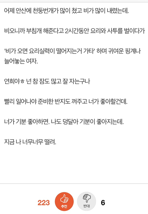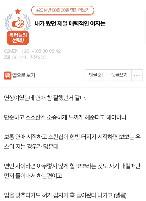 [기타][네이트판] 내가 봤던 제일 매력적인 여자는 작성자나가쟈아아아아아아아아|작성시간20.04.19|조회수15,264 목록 댓글 53 글자크기 작게가 글자크기 크게가 출처 : https://m.pann.nate.com/talk/324070106지금은 지옥에서 왔을 연희 다음검색 현재 게시글 추가 기능 열기 북마크 공유하기 신고 센터로 신고 댓글 댓글 53 댓글쓰기 답글쓰기 댓글 리스트 작성자raisondetre | 작성시간 20.04.19 아 조까쇼 우웩우웩 작성자있었는데없었습니다 | 작성시간 20.04.19 ㅅㅂ... 작성자아니내말좀들어보라고 | 작성시간 20.04.19 ? 작성자피자헡 | 작성시간 20.04.19 지랄쌈싸노 작성자봄빛 후리지아 | 작성시간 20.04.19 아 14냔도 글이데 ㅎ 댓글 전체보기