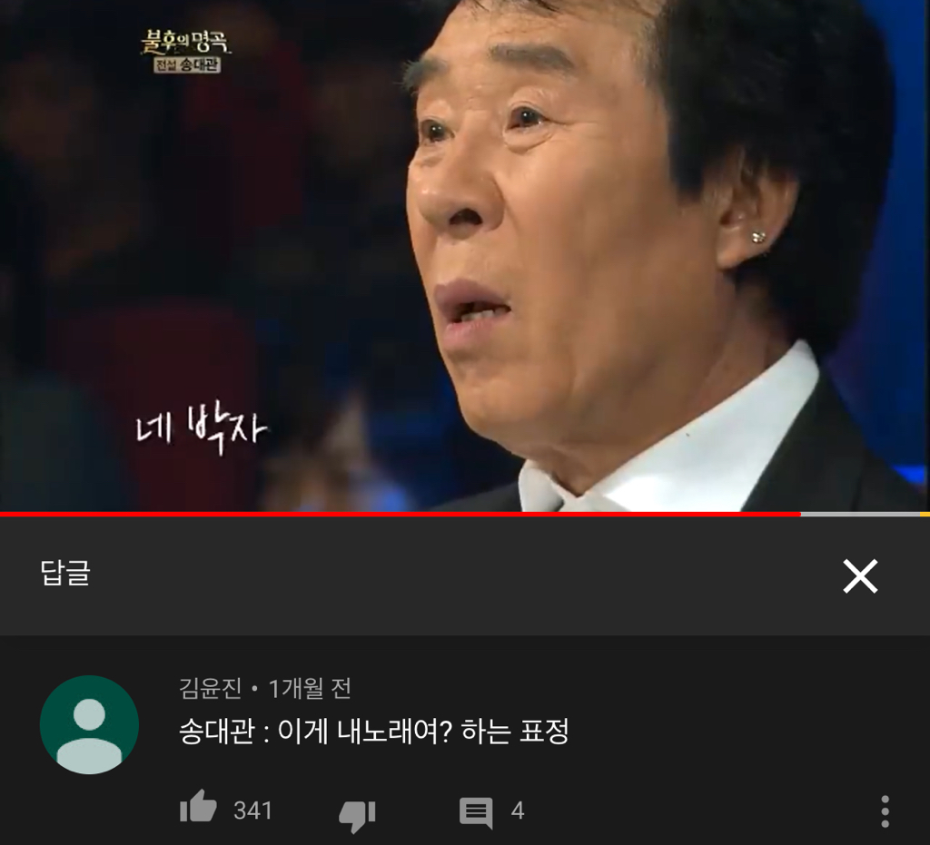 작성자그런 얘기 뭐하러 해 진짜 작성시간 20.04.27 송대관 편에서 나한테는 1위야! 진짜 찾아듣고 다시듣고 계속 생각나는 !