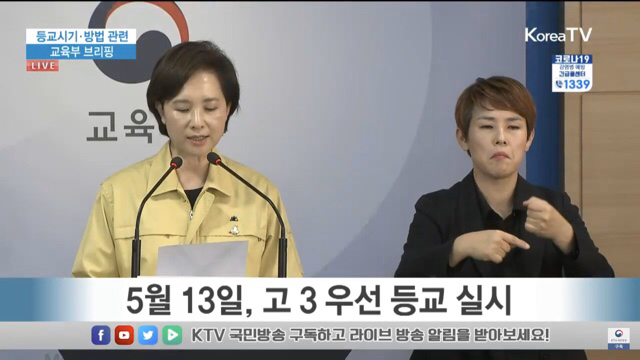 방역당국과의 협의 결과, 본격적인 대다수 학생의 등교수업은 5월 연휴기간 후에 최소 14일이 경과되어야 하며, 고등학교 3학년은 진로와 진학 준비 등 현실적인 여건을 고려해서 5월 연휴기간 후 7일이 경과한 시점부터 등교수업이 가능하다는 결론을 내렸습니다.