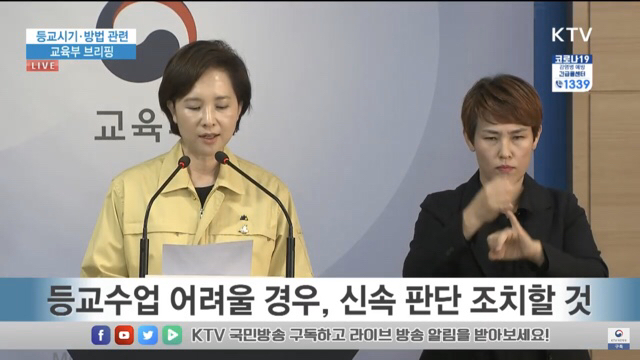 교육부는 감염증의 상황을 예의주시할 것이며, 질병관리본부 등 방역당국과의 긴밀한 협의를 통해서 조금이라도 등교수업이 어려울 경우 신속하게 판단 ·조치할 것입니다.