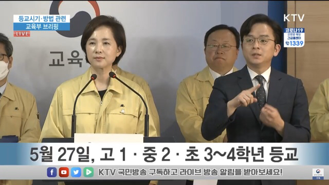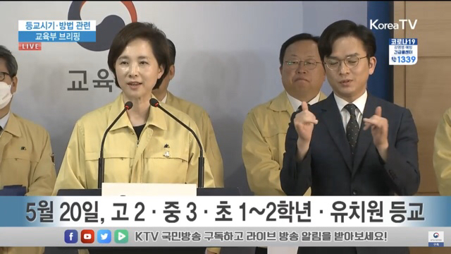 5월 13일 한 주 뒤인 5월 20일에는 고2, 중3, 초1 ·2학년과 유치원이, 5월 27일에는 고1, 중2, 초3 ·4학년이, 마지막 6월 1일에는 중1, 초5 ·6학년이 등교수업을 시작할 계획입니다.