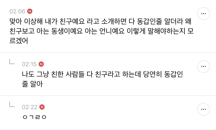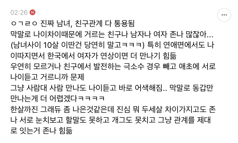 작성자욱기지만멋진놈 작성시간 20.05.13 나도 친한친구랑 한살차이야