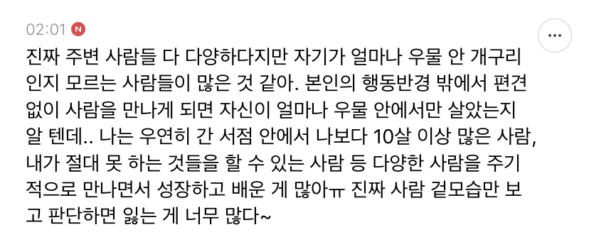 작성자뉴트 스캐맨더 작성시간 20.05.08 정말!!! 나 요즘 친하게 지내는 사람들 다 나이가 달라 6살 많은 사람들도 있고, 어린 사람들더 있고 ~