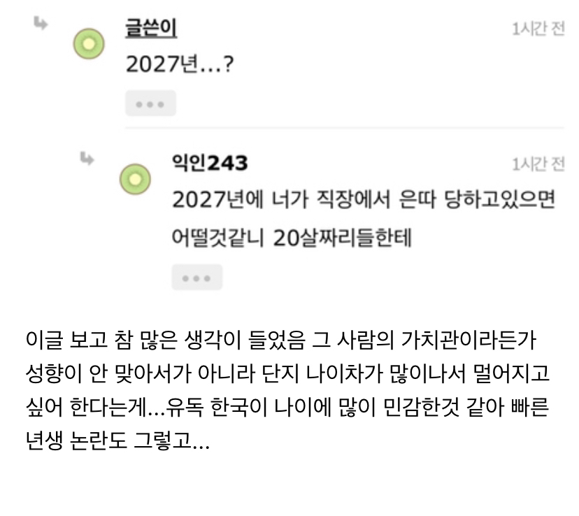 작성자갈라드리엘 작성시간 20.05.07 ㄹㅇ..가치관이 중요하지 요즘 유치원때부터 나이차따지면서 윗사람이니까 말들으라고 그런다며.. 애초에 친구가 될수 있을지 없을지랑 나이가 그렇게 많은데 어케 친구를..? 이거랑 엄청 다르다고 봄
